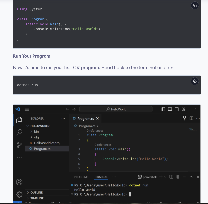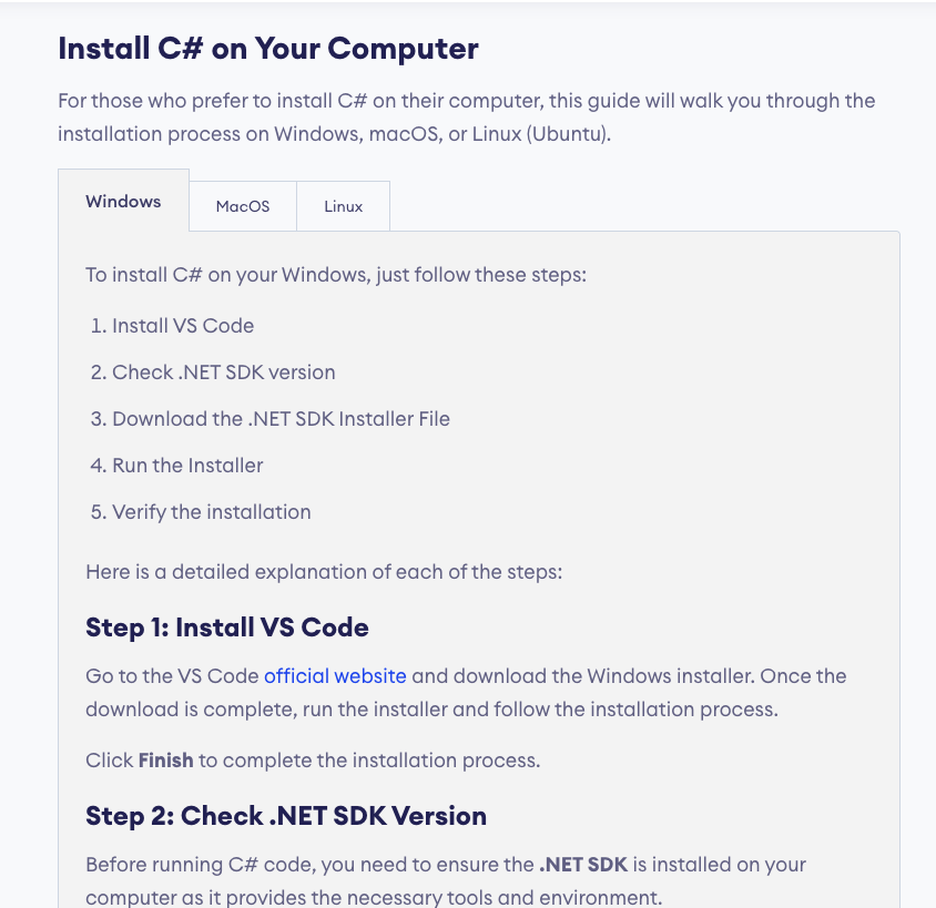 To run C# code, you must have the .NET SDK installed on your system. However, you can use free online C# compiler if you want to start immediately.